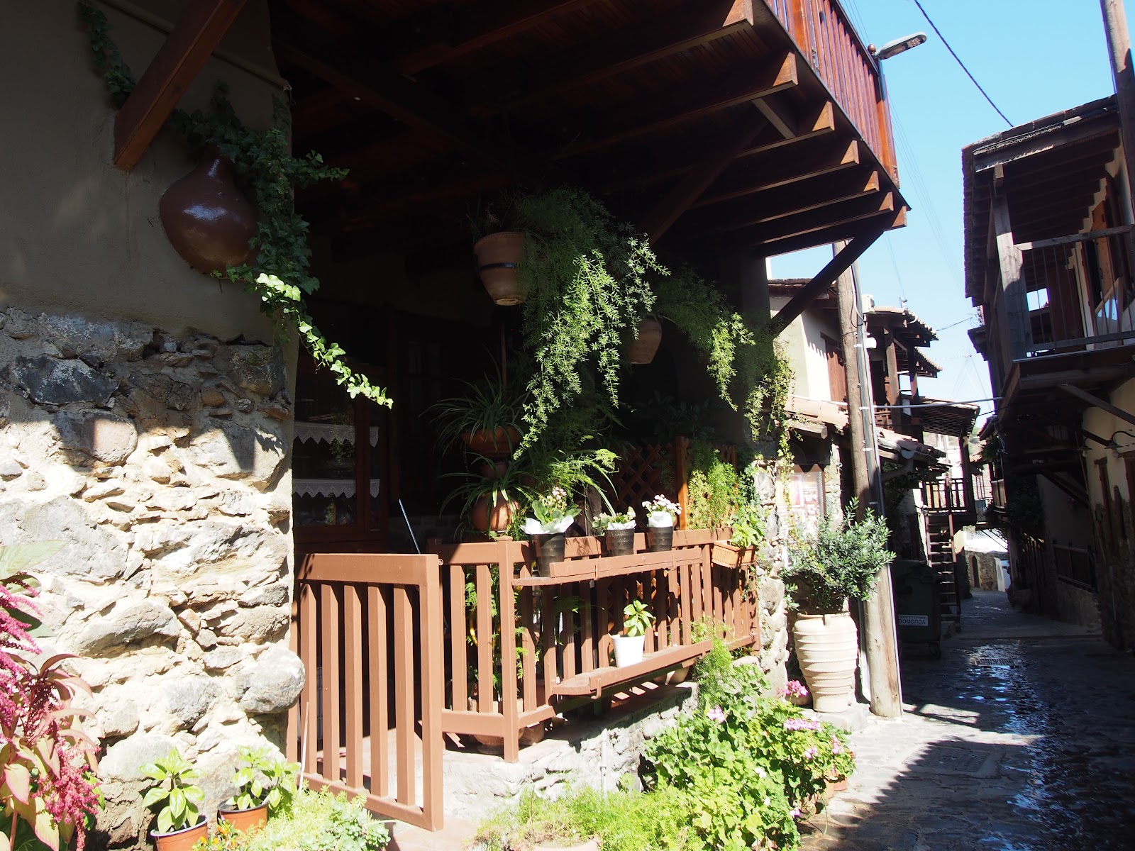 Γραφικά στενά, λιθόστρωτα δρομάκια, διώροφα σπίτια με ξύλινα μπαλκόνια χτισμένα κυρίως από τοπικό πέτρωμα και πλιθάρια σκεπάζονται με επικλινείς και κεραμιδένιες στέγες